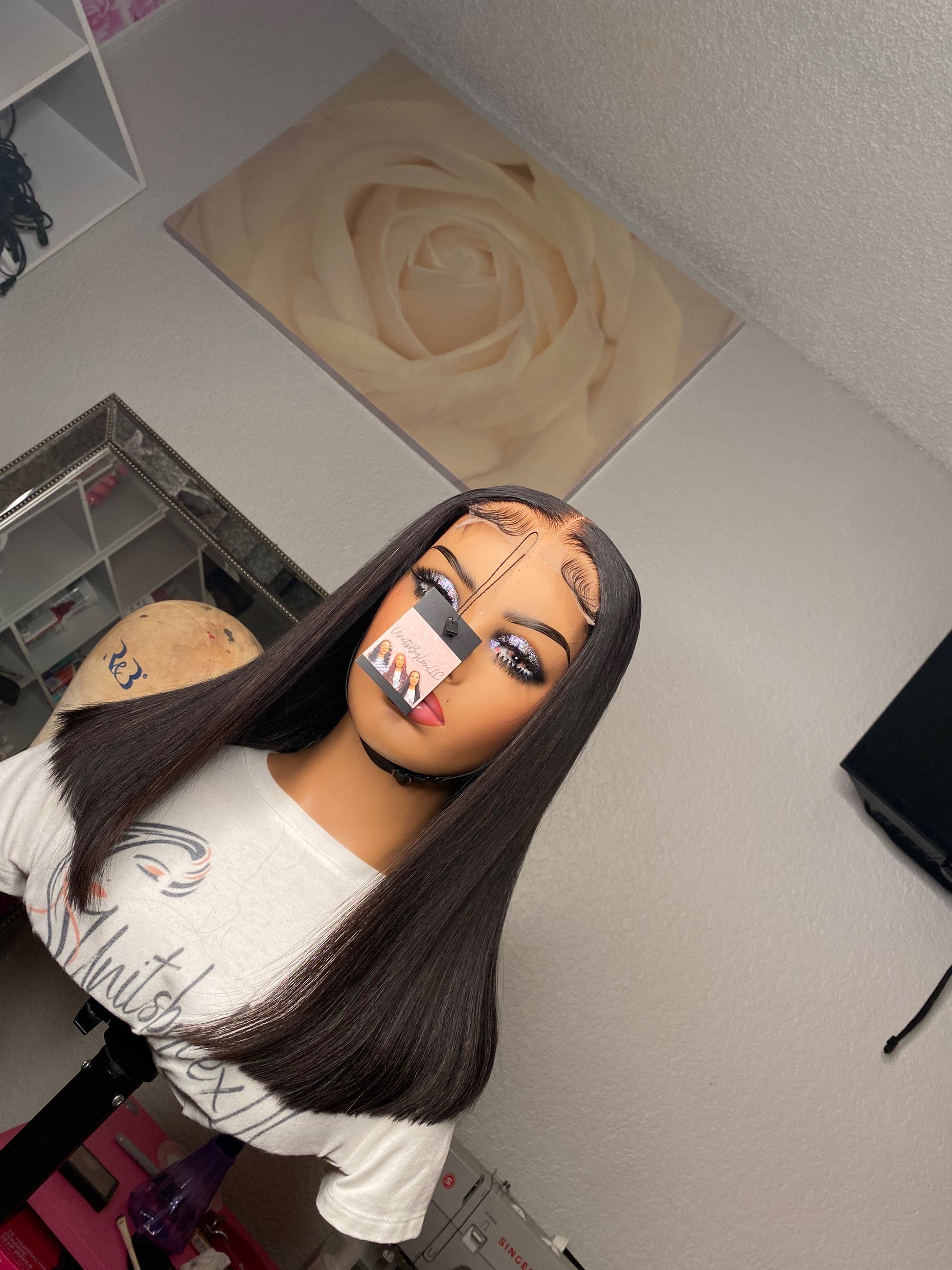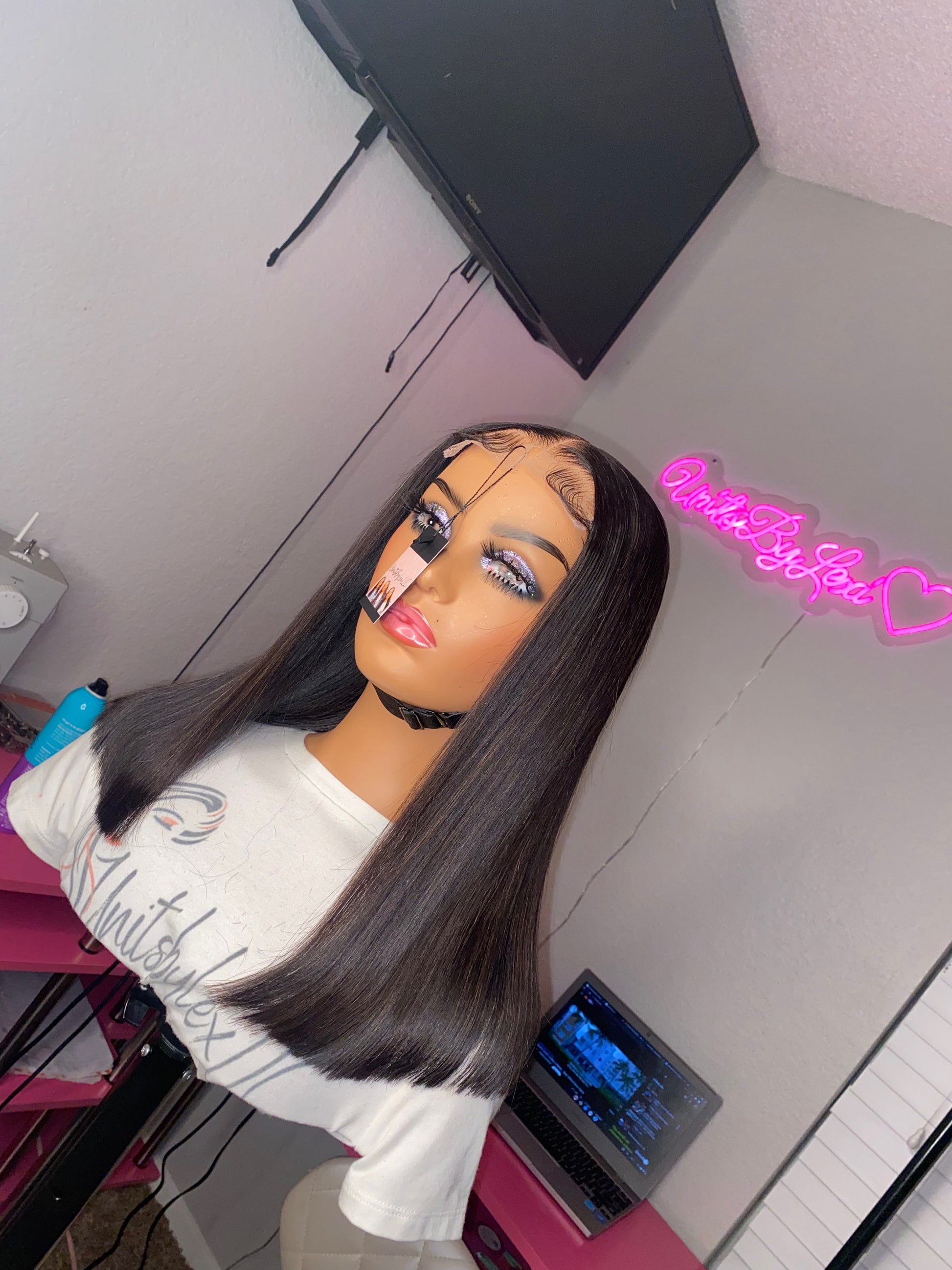 16”, cut blunt or to your preferred length, VIRGIN HAIR, Factory and/or Machine Made, 5x5 HD lace, 180%density(3 bundles), GLUELESS, Adjustable band & clips