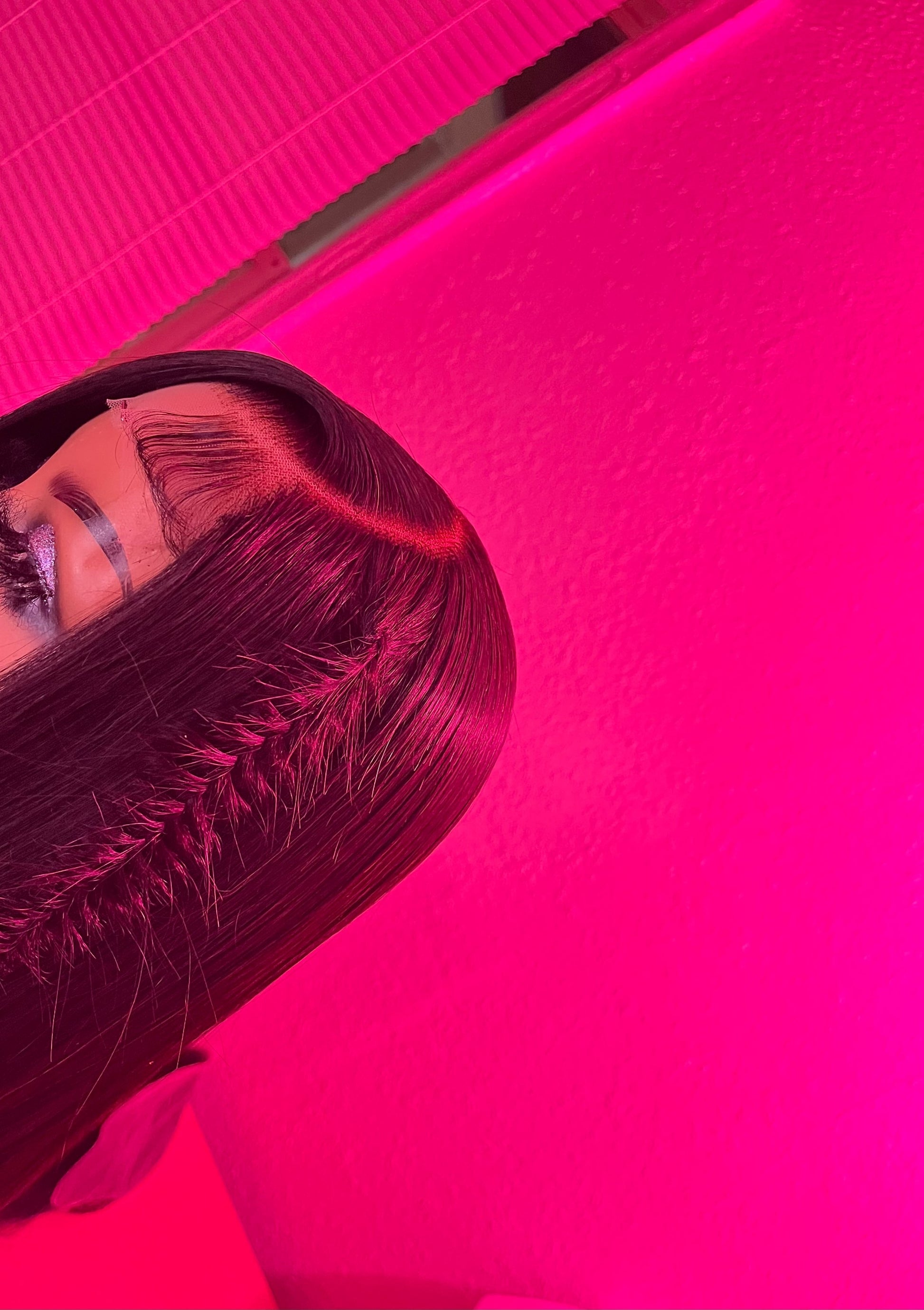 Originally 14”, cut asymmetric, 5x5 transparent lace closure, factory made, fully customized/ ready to wear, added butterfly braid(optional) adjustable band & clips