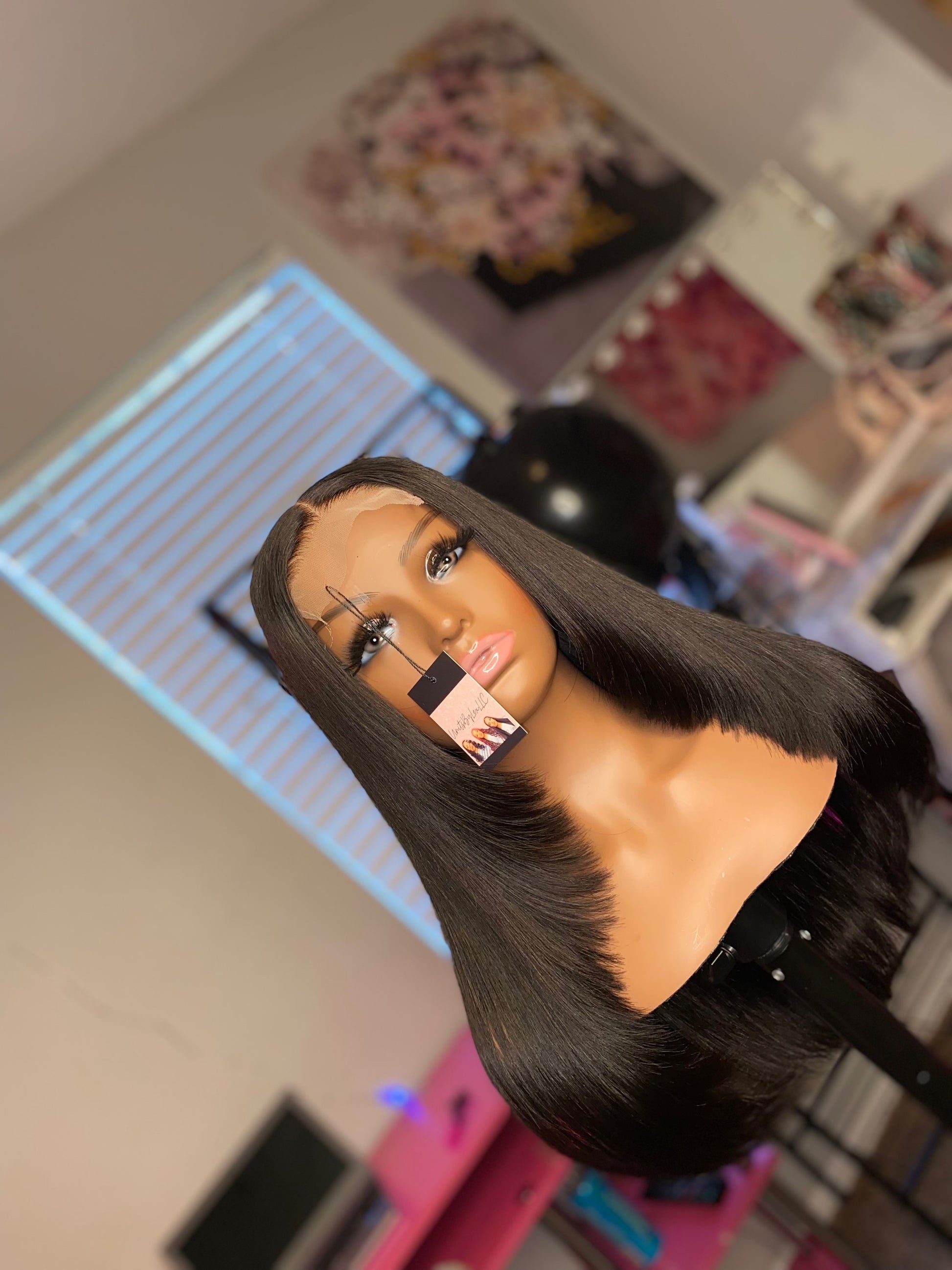 22”, FULLY layered, factory made, VIRGIN HAIR, 4x4 transparent closure, 180% density(3 bundles of 22”) GLUELESS, Adjustable band &clips