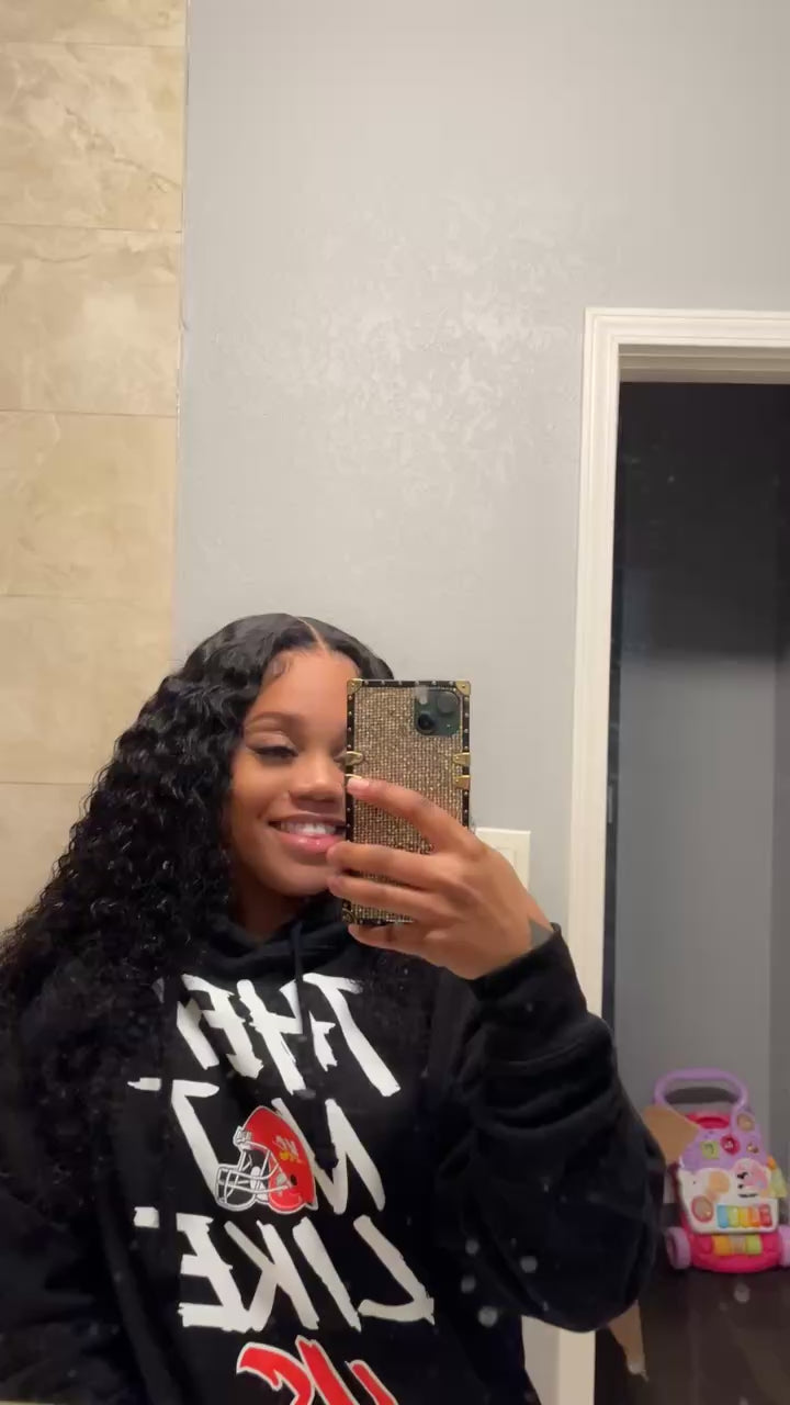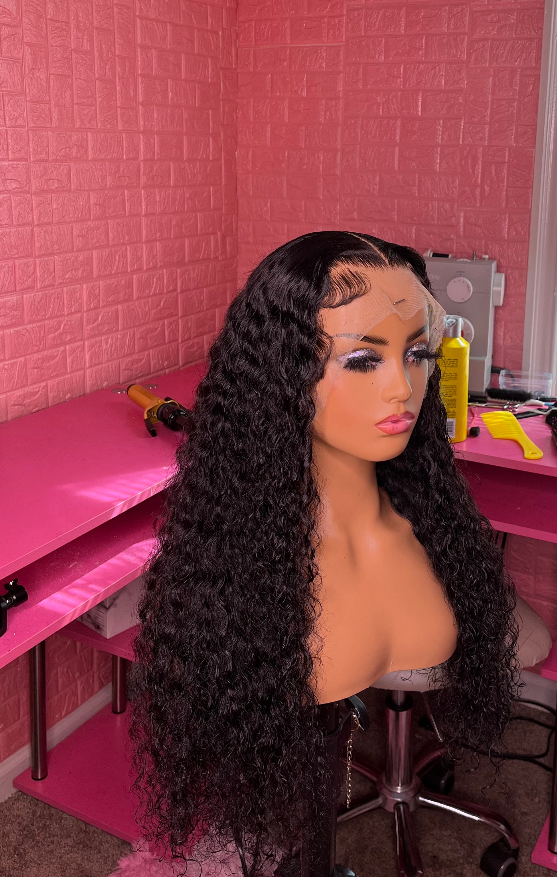 26”, 13x4 transparent lace frontal, 180% density, factory made, adjustable bands & clips, fully customized/ready to wear, hair is in its natural state NO product has been added. Please put in note section at checkout if you would like curls defined!