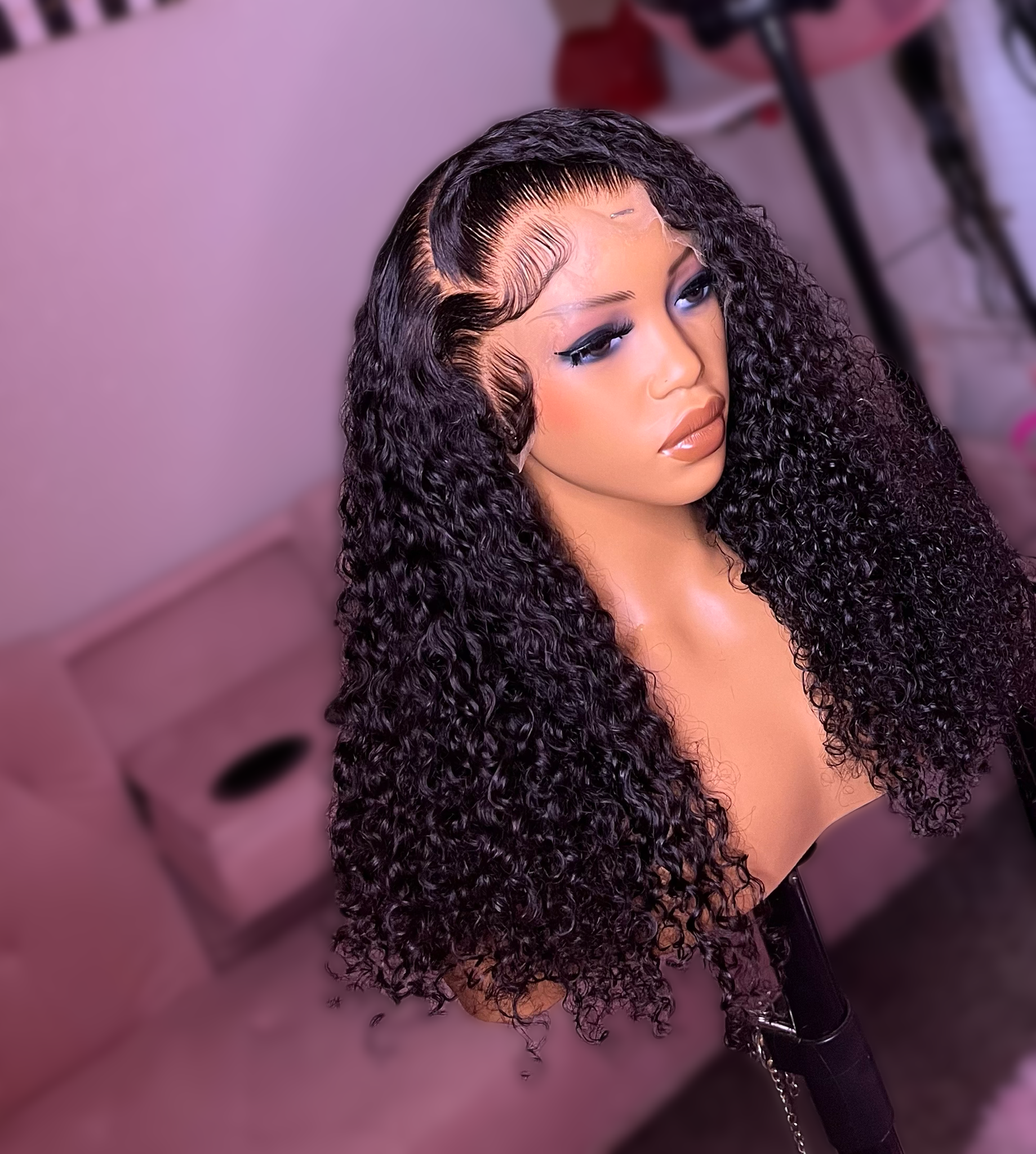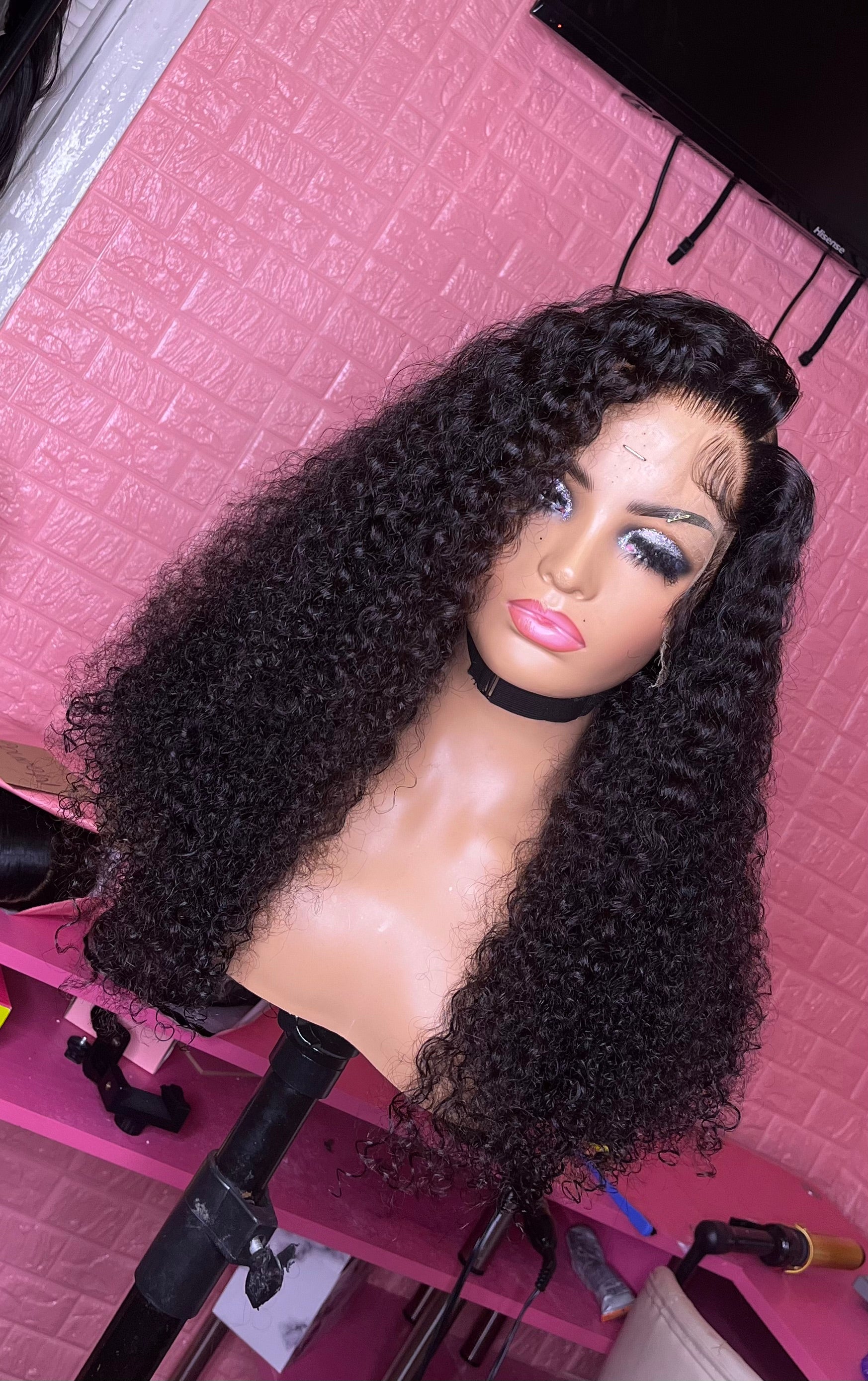 20”, 200% density(4 bundles of 20”), 13x6 HD lace, deep curly texture very similar to burmese curly but tighter , machine made, adjustable band & clips, fully customized/ready to wear