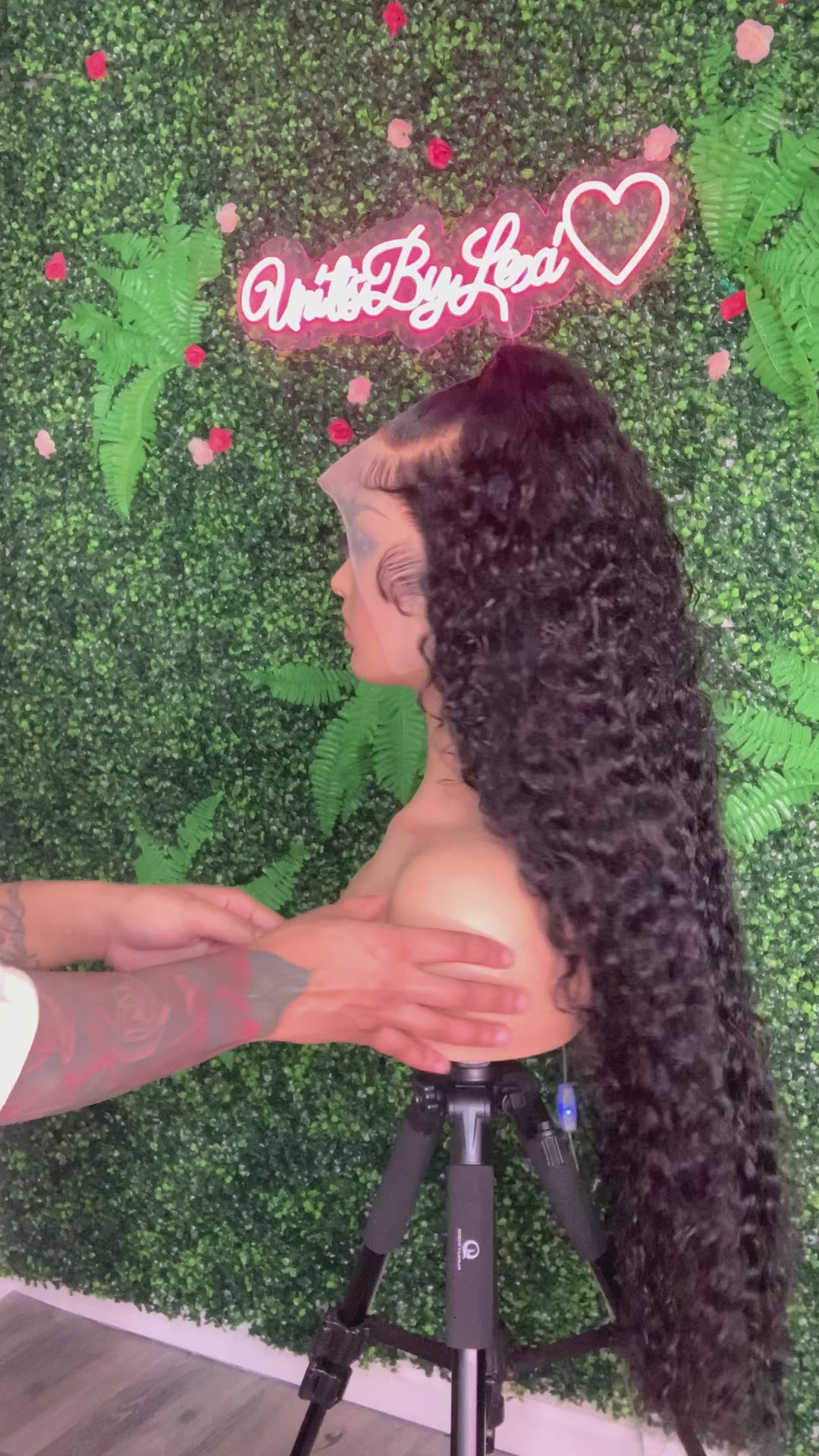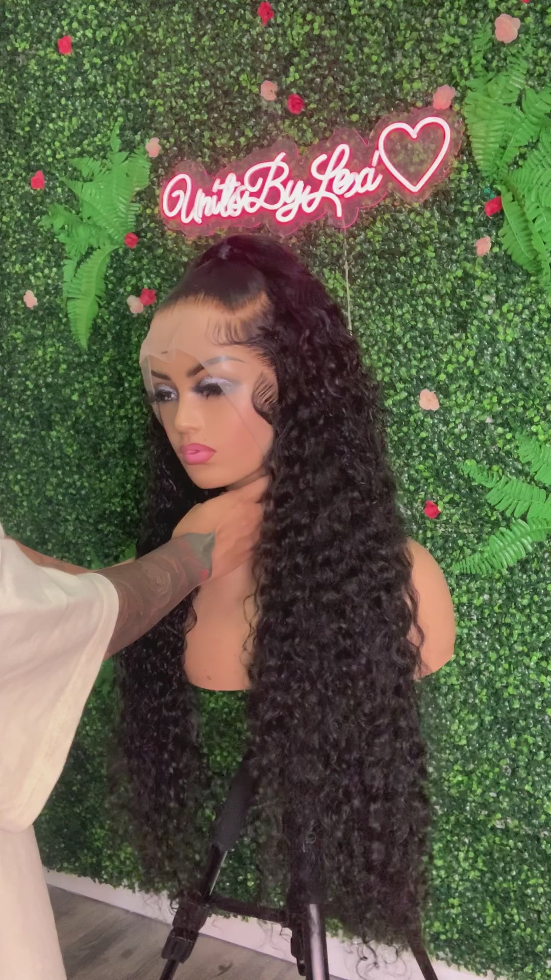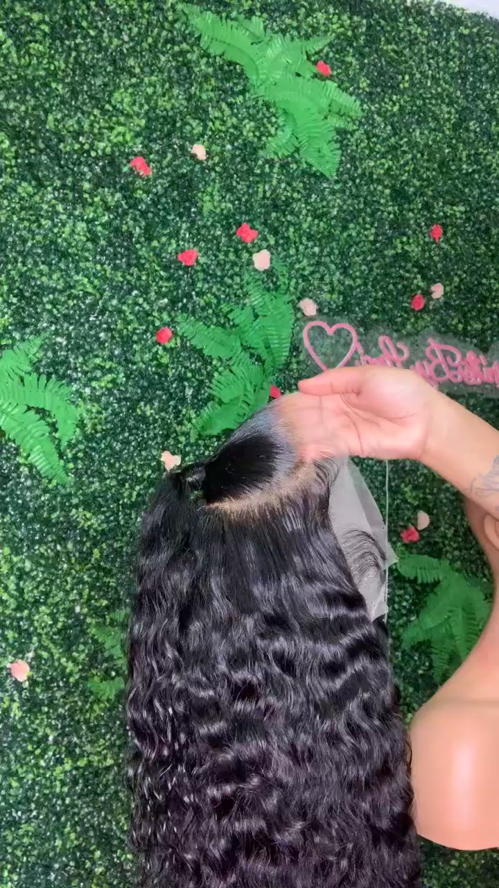 32”, deep wave texture, factory made, 13x4 transparent lace front, 180% density, Adjustable band & clips